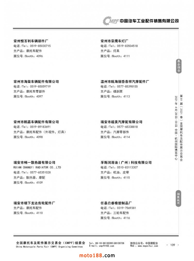 內109 第80屆(2020秋)全國摩托車及配件展示交易會-廣州站參展企業信息