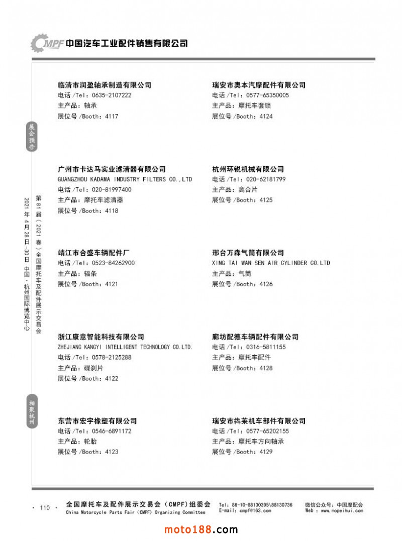 內110 第80屆(2020秋)全國摩托車及配件展示交易會-廣州站參展企業信息