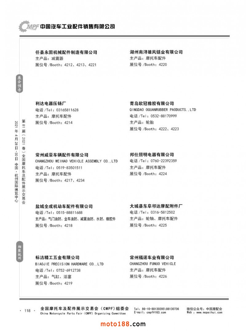 內(nèi)118 第80屆(2020秋)全國(guó)摩托車及配件展示交易會(huì)-廣州站參展企業(yè)信息