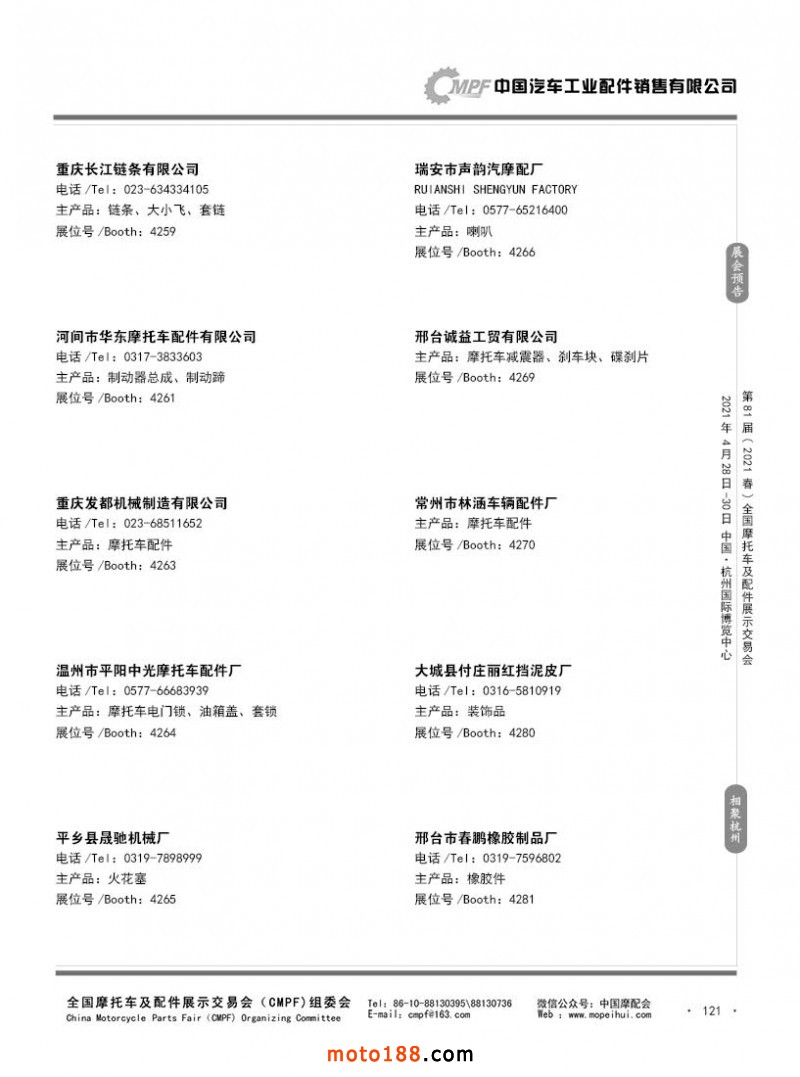 內121 第80屆(2020秋)全國摩托車及配件展示交易會-廣州站參展企業信息