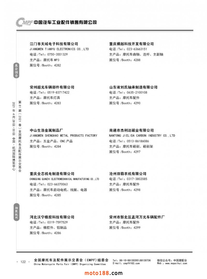 內122 第80屆(2020秋)全國摩托車及配件展示交易會-廣州站參展企業信息