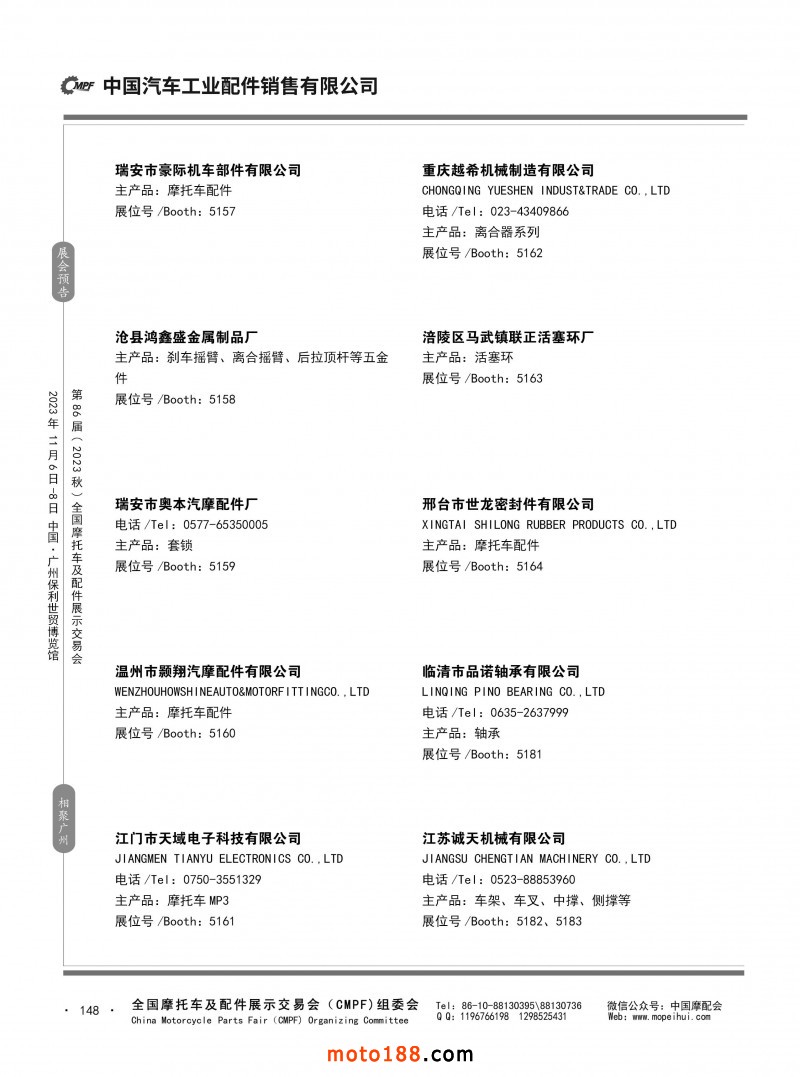 內(nèi)80-176 第85屆(2023春)全國摩托車及配件展示交易會-重慶站參展企業(yè)信息