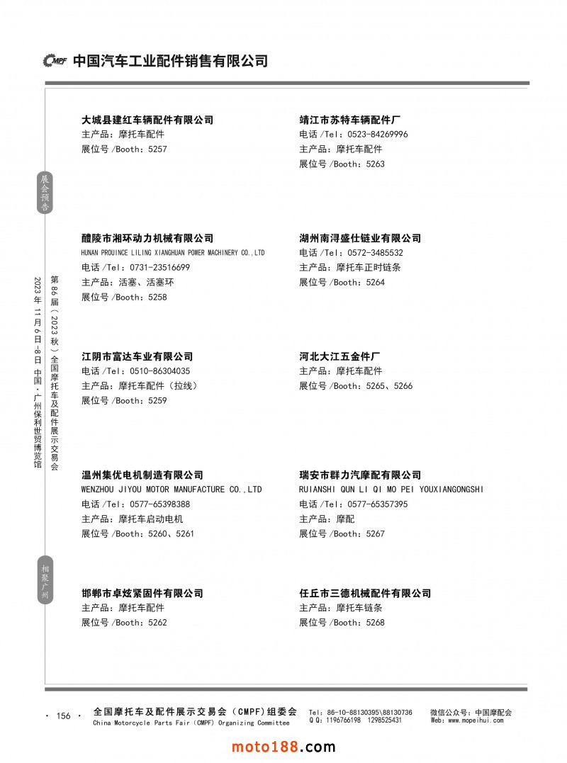內80-176 第85屆(2023春)全國摩托車及配件展示交易會-重慶站參展企業(yè)信息