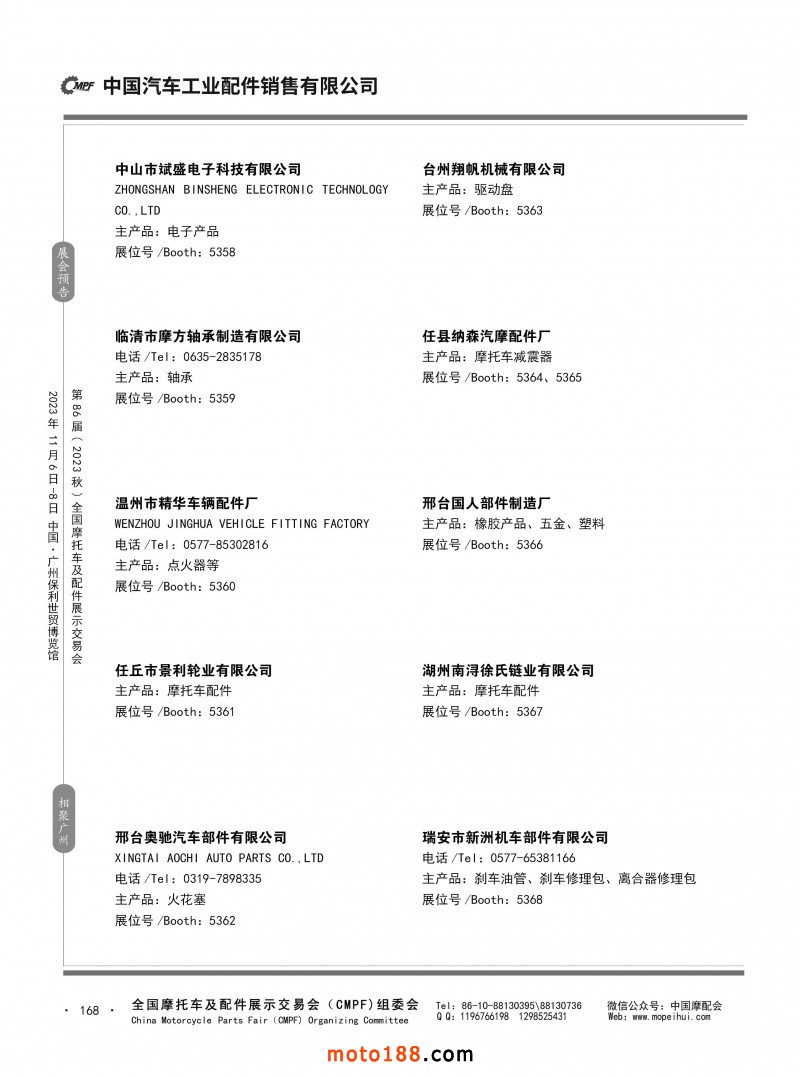 內(nèi)80-176 第85屆(2023春)全國摩托車及配件展示交易會-重慶站參展企業(yè)信息
