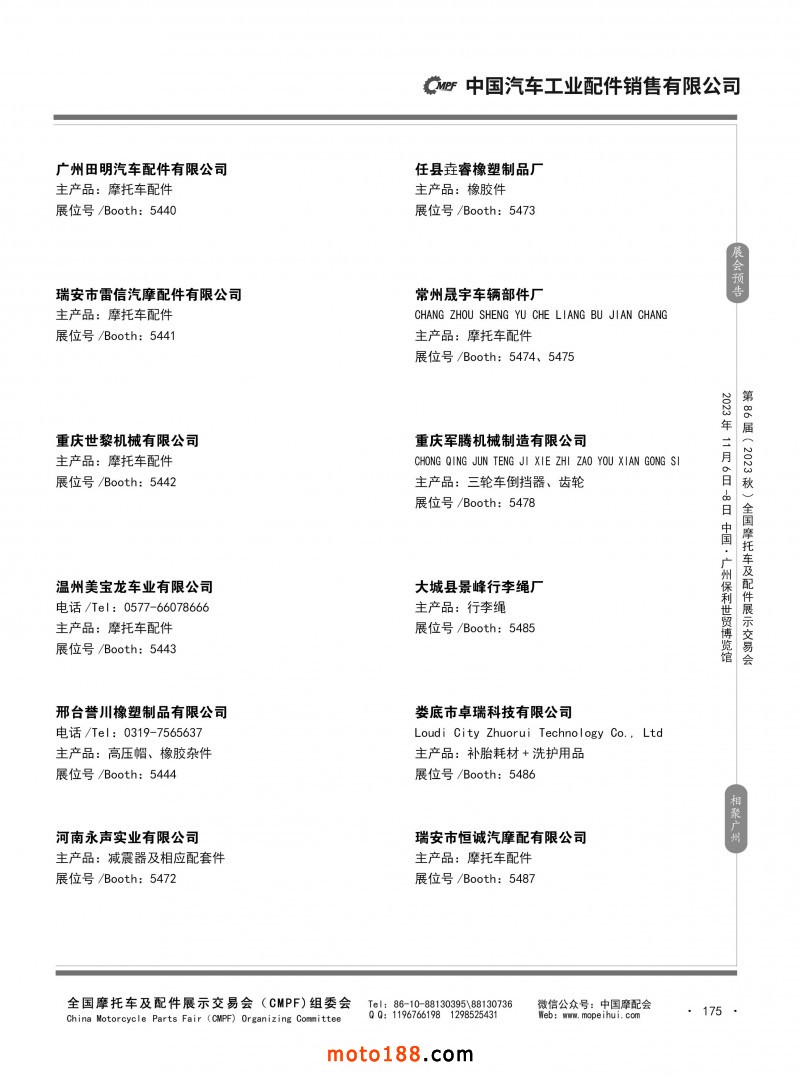 內80-176 第85屆(2023春)全國摩托車及配件展示交易會-重慶站參展企業信息