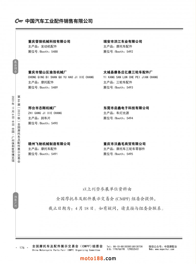 內(nèi)80-176 第85屆(2023春)全國(guó)摩托車及配件展示交易會(huì)-重慶站參展企業(yè)信息