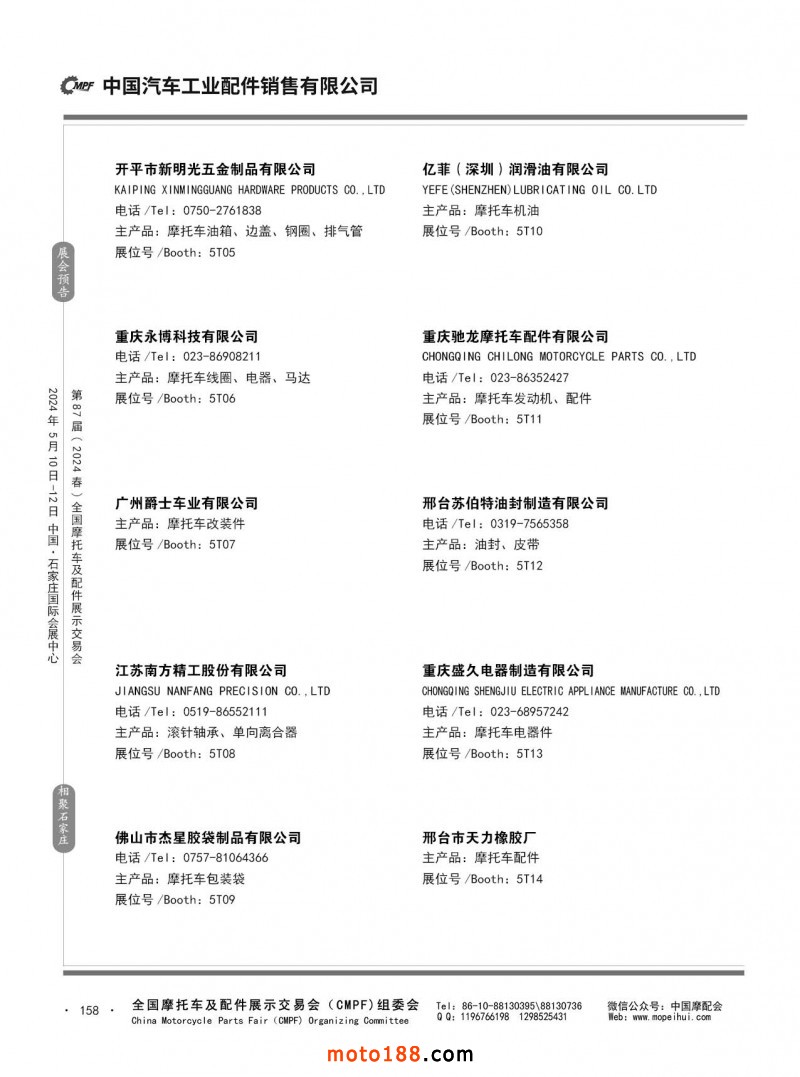 第86屆(2023秋)全國摩托車及配件展示交易會-廣州站參展企業(yè)信息