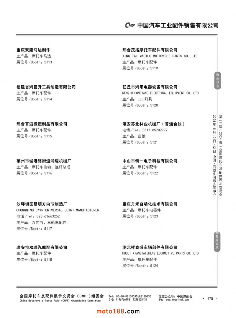 第86屆(2023秋)全國摩托車及配件展示交易會-廣州站參展企業(yè)信息