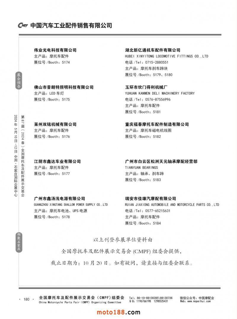 第86屆(2023秋)全國摩托車及配件展示交易會-廣州站參展企業信息