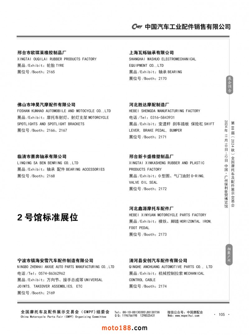 內56-132 第87屆(2024春)全國摩托車及配件展示交易會-石家莊站參展企業信息