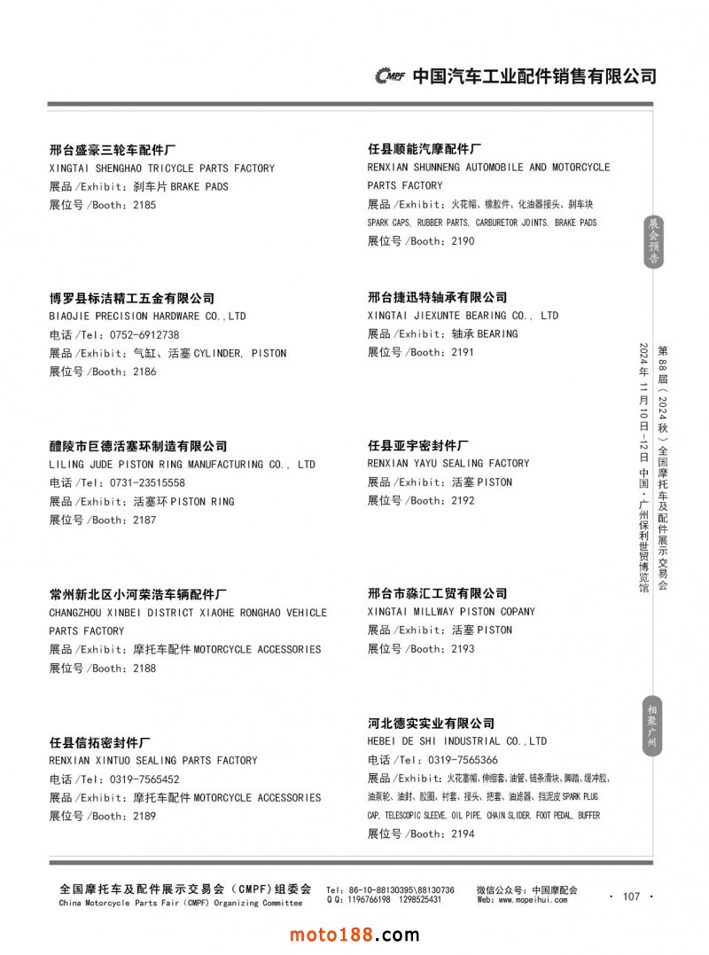 內56-132 第87屆(2024春)全國摩托車及配件展示交易會-石家莊站參展企業信息