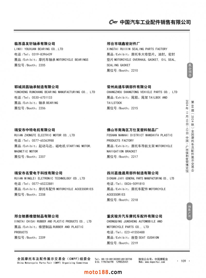 內56-132 第87屆(2024春)全國摩托車及配件展示交易會-石家莊站參展企業信息