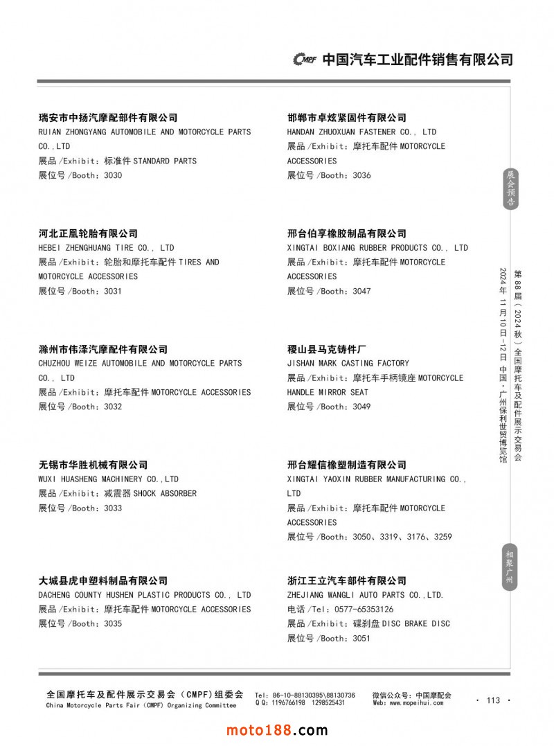 內56-132 第87屆(2024春)全國摩托車及配件展示交易會-石家莊站參展企業信息