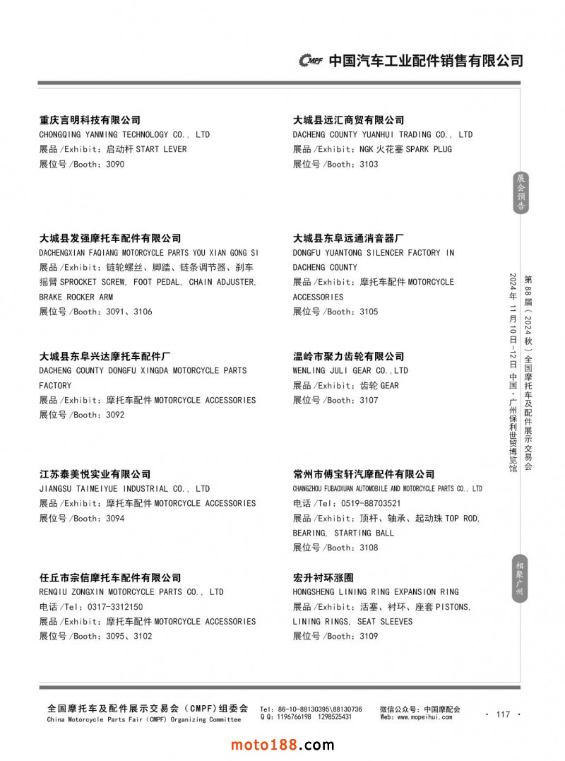 內(nèi)56-132 第87屆(2024春)全國摩托車及配件展示交易會-石家莊站參展企業(yè)信息