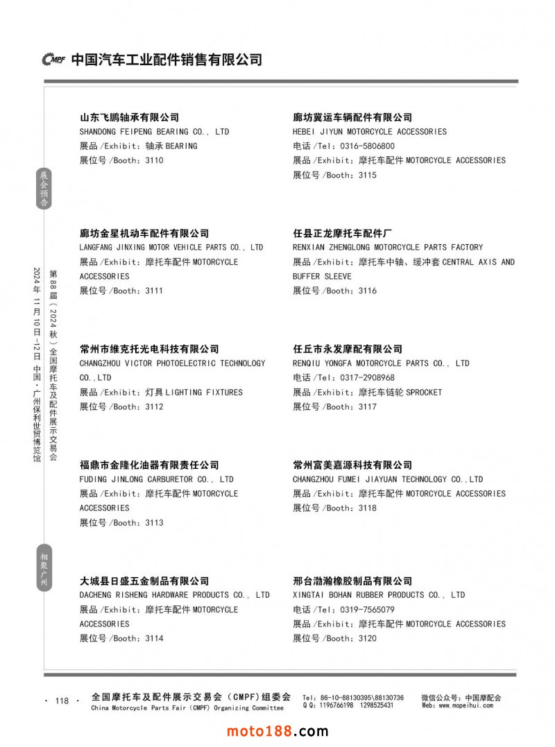 內56-132 第87屆(2024春)全國摩托車及配件展示交易會-石家莊站參展企業信息