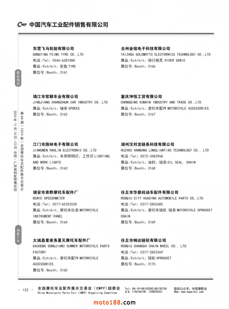 內56-132 第87屆(2024春)全國摩托車及配件展示交易會-石家莊站參展企業信息