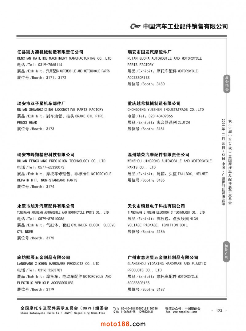 內56-132 第87屆(2024春)全國摩托車及配件展示交易會-石家莊站參展企業信息