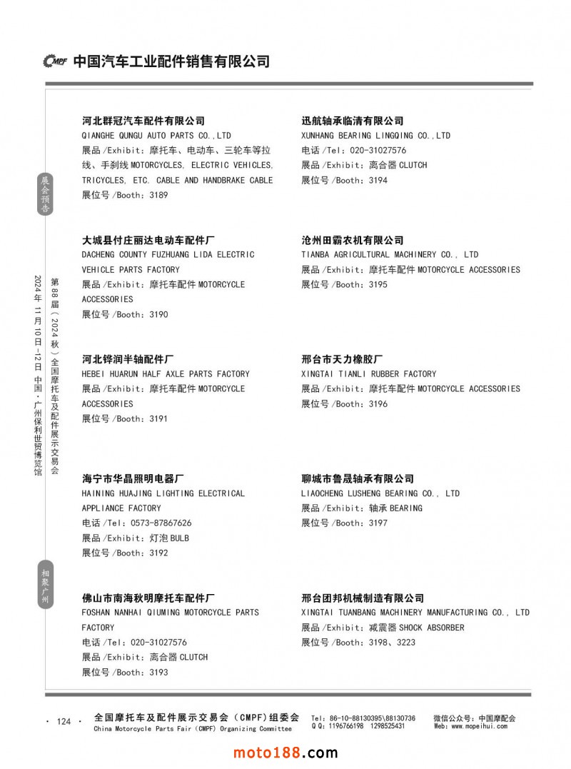 內(nèi)56-132 第87屆(2024春)全國摩托車及配件展示交易會(huì)-石家莊站參展企業(yè)信息