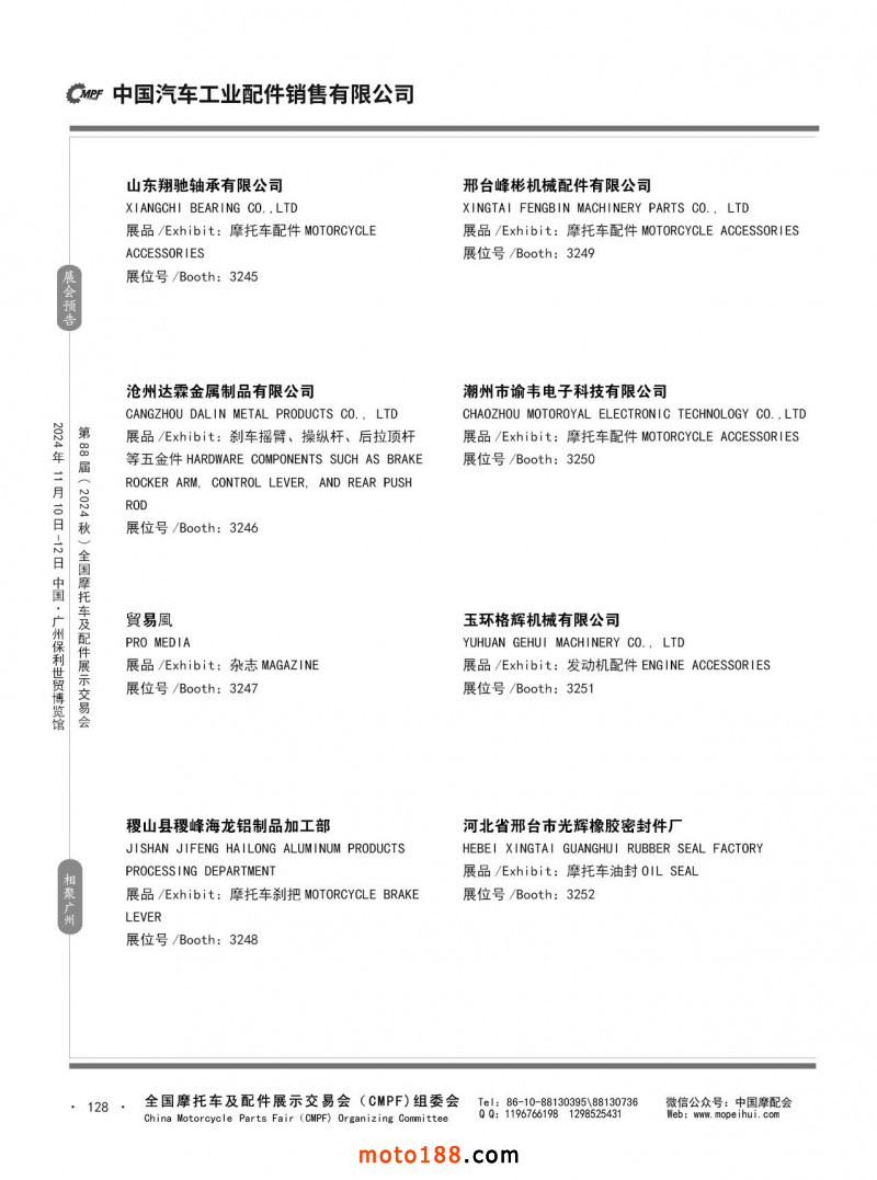 內56-132 第87屆(2024春)全國摩托車及配件展示交易會-石家莊站參展企業信息