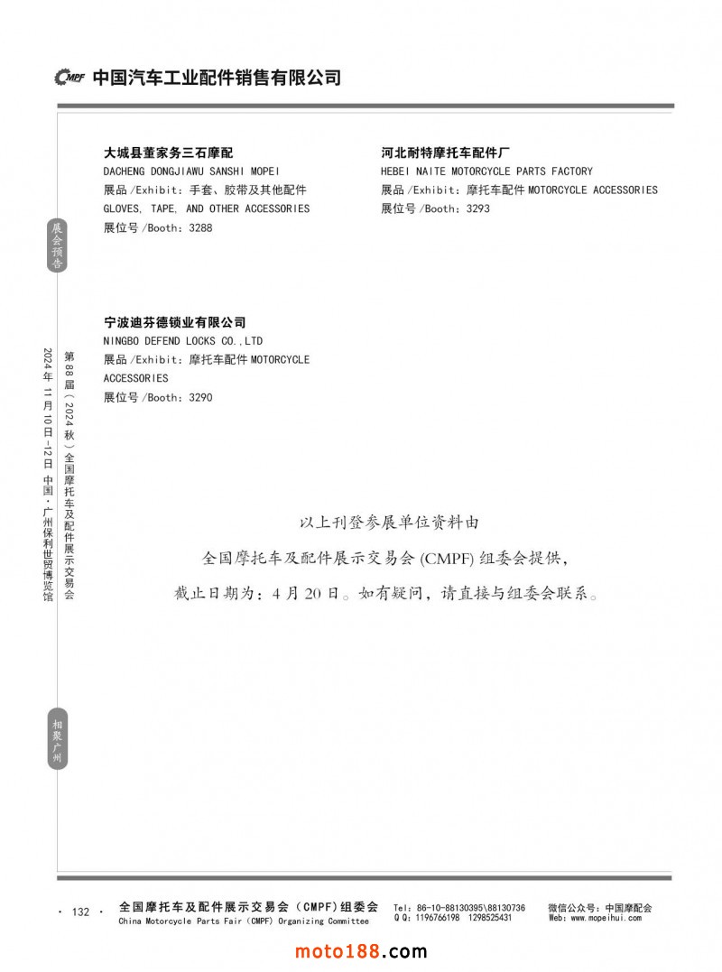 內56-132 第87屆(2024春)全國摩托車及配件展示交易會-石家莊站參展企業信息