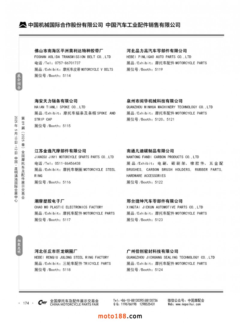 內69-188 第88屆(2024秋)全國摩托車及配件展示交易會-廣州站參展企業信息