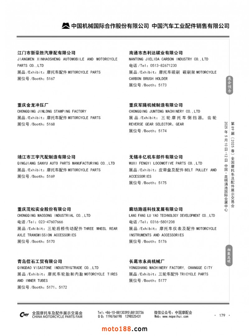 內69-188 第88屆(2024秋)全國摩托車及配件展示交易會-廣州站參展企業信息