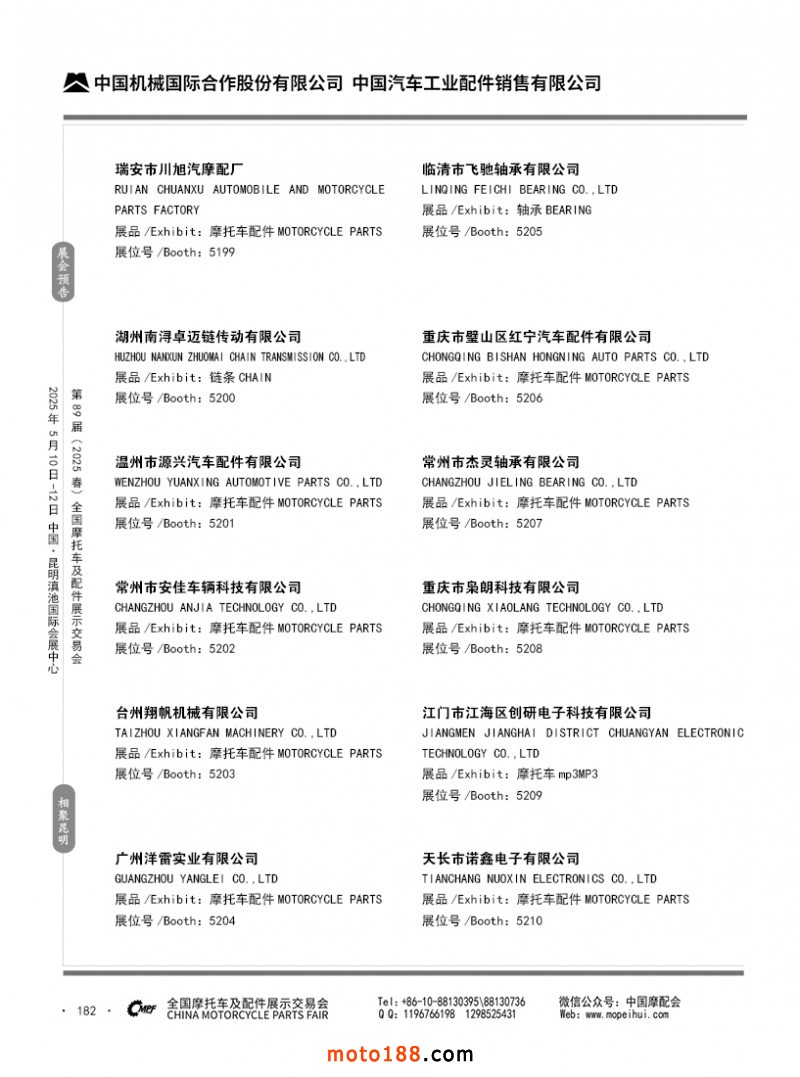 內69-188 第88屆(2024秋)全國摩托車及配件展示交易會-廣州站參展企業(yè)信息
