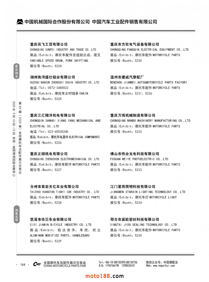 內69-188 第88屆(2024秋)全國摩托車及配件展示交易會-廣州站參展企業信息