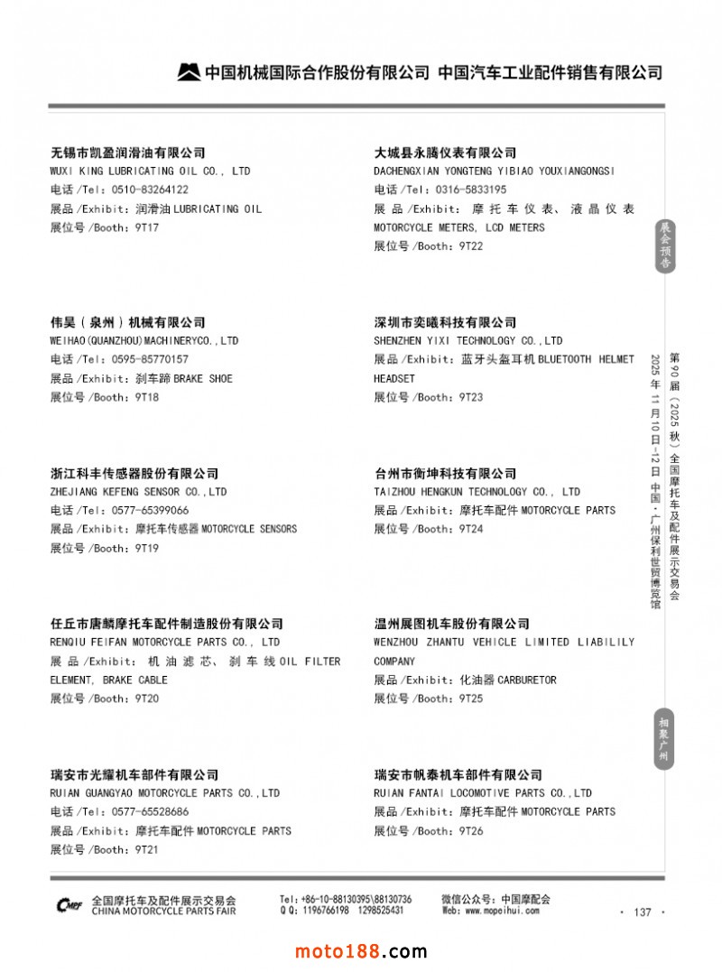 內137 第89屆(2025春)全國摩托車及配件展示交易會-昆明站參展企業信息