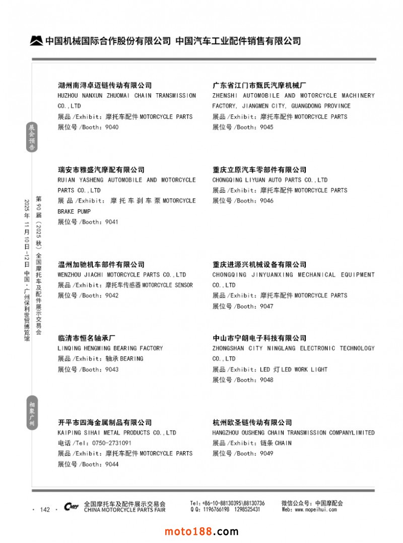 內142 第89屆(2025春)全國摩托車及配件展示交易會-昆明站參展企業信息