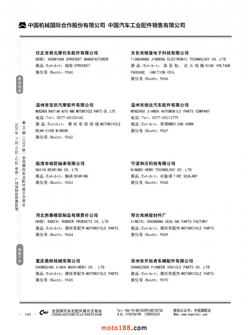 內144 第89屆(2025春)全國摩托車及配件展示交易會-昆明站參展企業信息