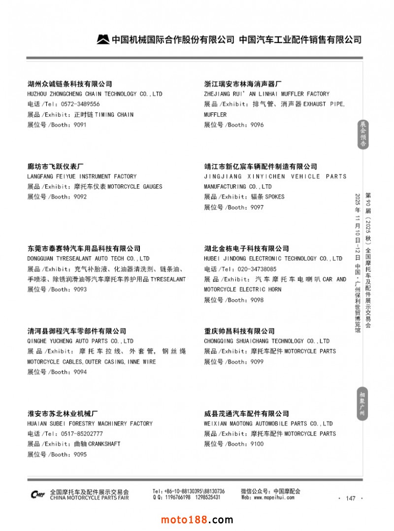 內(nèi)147 第89屆(2025春)全國摩托車及配件展示交易會(huì)-昆明站參展企業(yè)信息