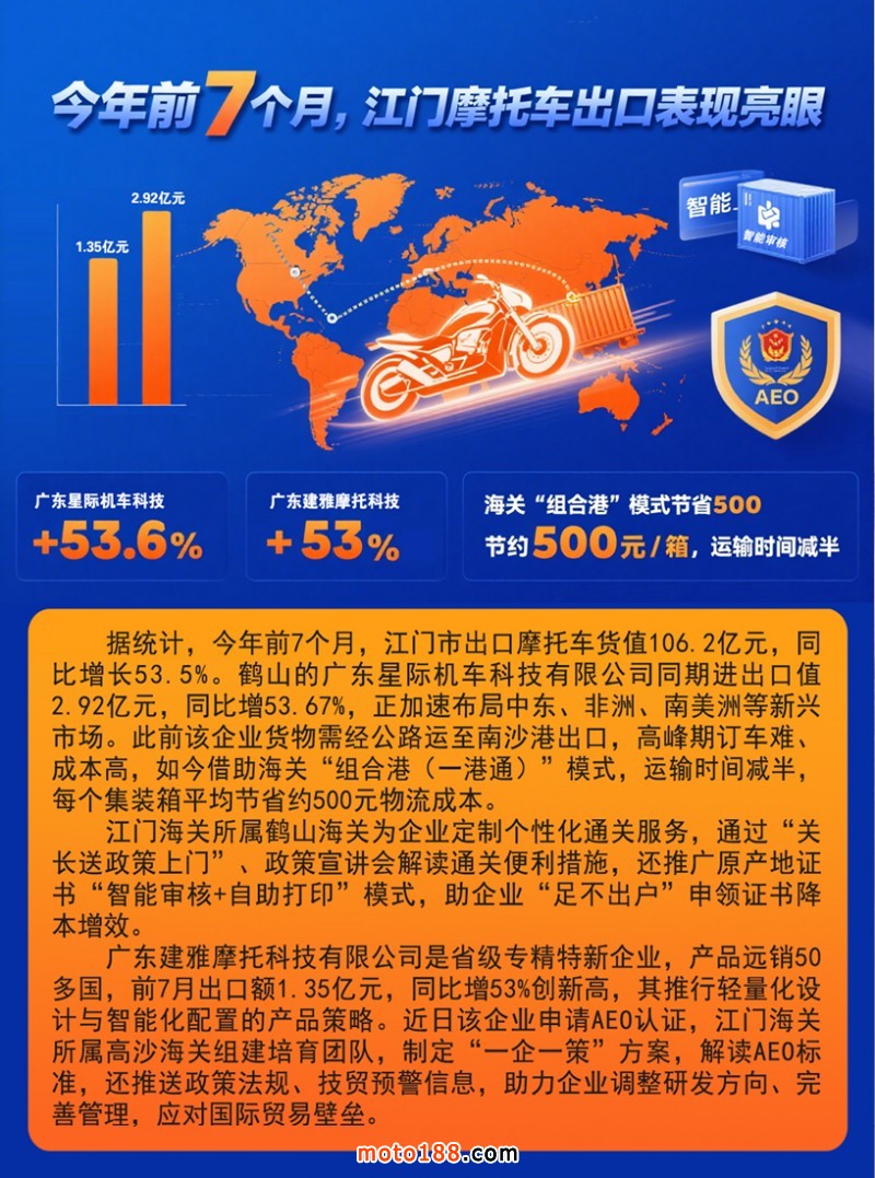 內1 今年前7個月,江門摩托車出口表現亮眼