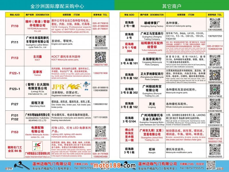 金沙洲國際摩配名錄 1 …………218