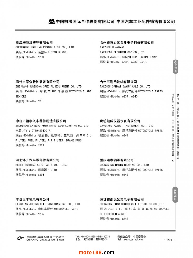 內(nèi)201 第90屆(2025秋)全國摩托車及配件展示交易會-廣州站參展企業(yè)信息