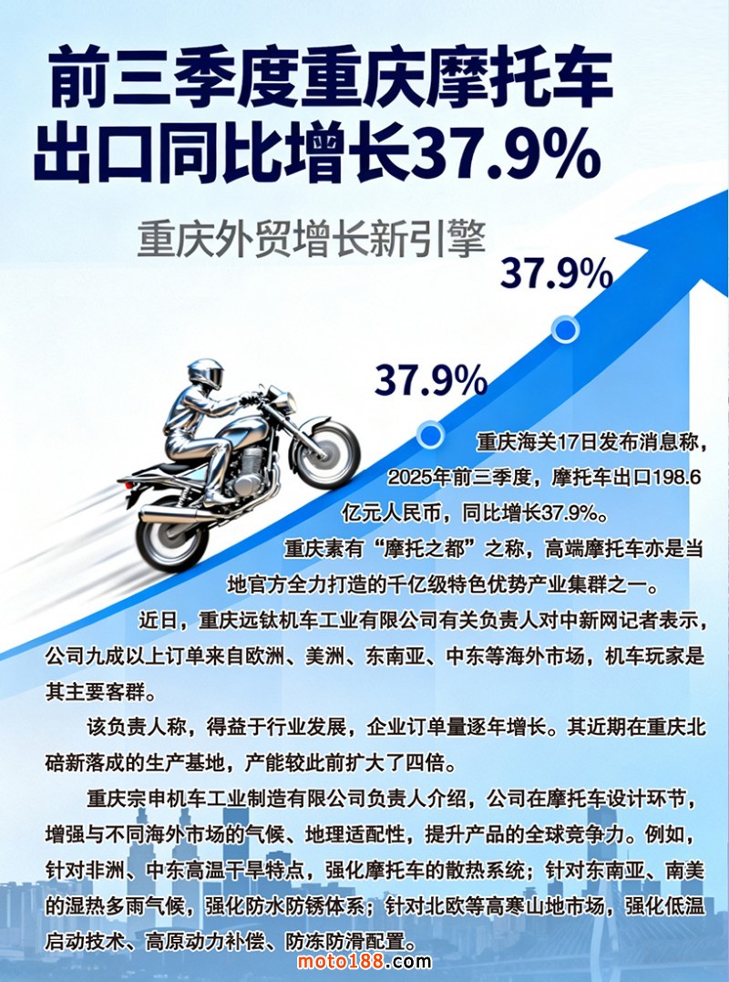 內1 前三季度重慶摩托車出口同比增長37.9%