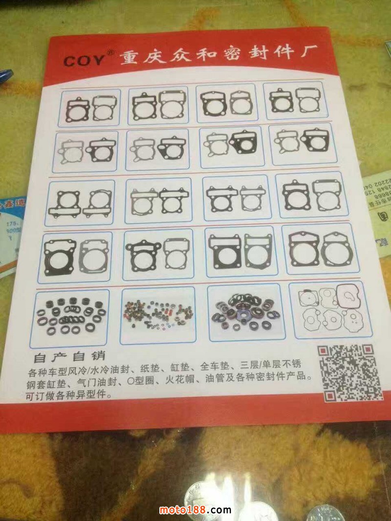 重慶眾和密封件廠,自產自銷各種車型風冷/水冷油封、紙墊、缸墊、全車墊、三層/單層不銹鋼套缸墊、氣門油封、O型圈、火花塞、油管及各種密封件產品。可訂做各種異型件。