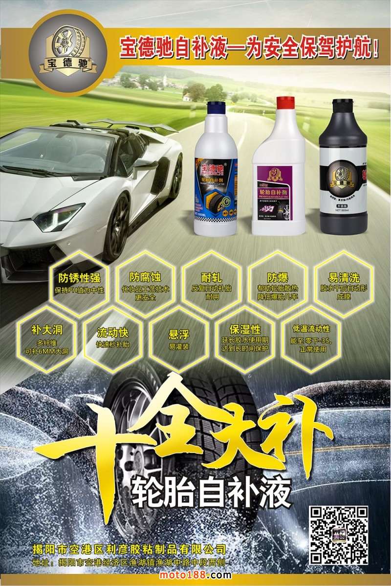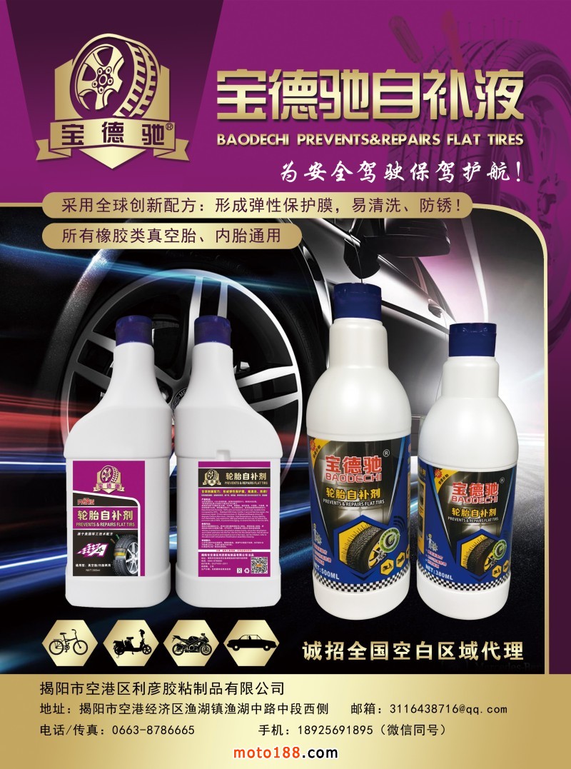 寶德馳輪胎自補液,適用于自行車、電動車、摩托車、汽車等所有橡膠類真空胎、內胎,創新配方:形成彈性保護膜,易清洗、防銹、防凍零下30度!誠招全國空白區域代理,歡迎來電,咨詢熱線/微信:18925691895,陳先生