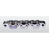 高強度鏈:是一種特制滾子鏈,通過改進鏈板形狀,加厚鏈板、精沖鏈板孔、銷軸熱處理強化,可提高抗拉強度15~30%,并具有良好沖擊性能、疲勞性能。