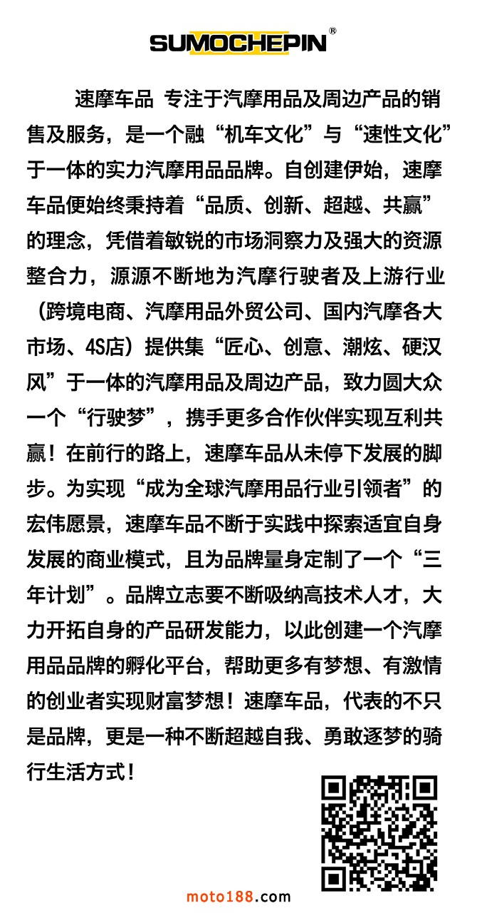速摩車品公司為客戶創(chuàng)造更大的產(chǎn)品價值以多品種經(jīng)營特色和薄利多銷的原則,贏得了廣大客戶的信任。 公司秉承“顧客至上,銳意進取”的經(jīng)營理念,堅持“客戶第一”的原則為廣大客戶提供優(yōu)質(zhì)的服務。公司主要經(jīng)營:摩托車電動車手機充電器件、摩托車騎士裝備、摩托車LED燈飾、CNC鋁件、摩托車LED大燈件、手機架件、高品質(zhì)喇叭燈。
