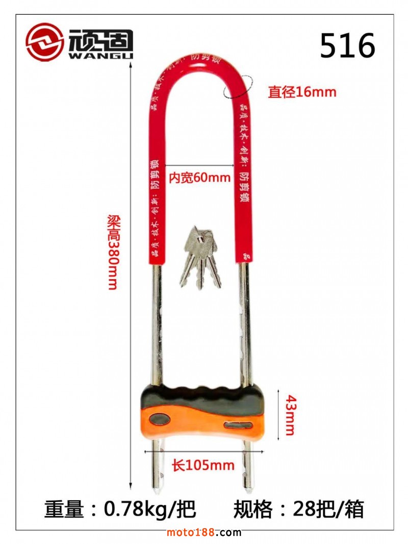 金潤制鎖廠專業(yè)做鎖20年,建廠于1998年,位于韓愈故里--河南孟州。獨(dú)家品牌名稱“頑固”,企業(yè)主營自行車、電動車、摩托車、玻璃門鎖具。品種涵蓋U型鎖、鋼管鎖、玻璃門插鎖、鏈條鎖、鋼絲鎖、條形所、碟剎鎖、電瓶鎖等。