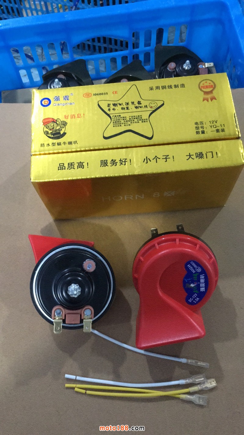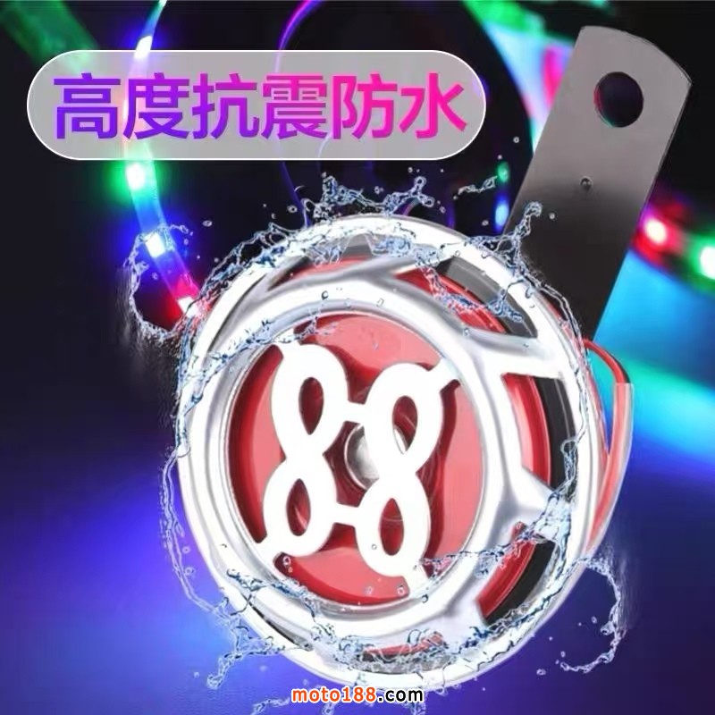它來了.重點:單音蝸牛喇叭聲音洪亮。使用壽命長.還帶炫彩燈功能