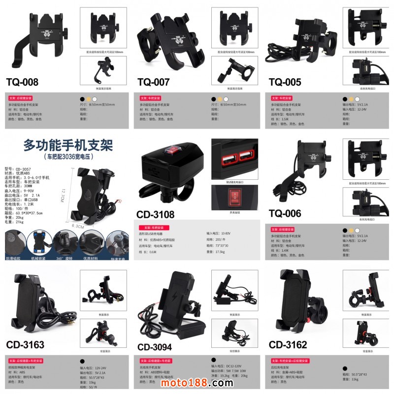手機支架充電器系列,各種手機支架,適合摩托車,電動車,鋰電車,代駕車,外賣車,各種電壓可選12-24V(9-90V)