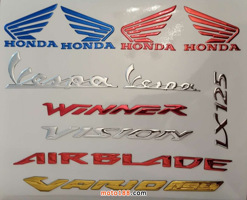 專業生產摩托車標牌,摩托車廣告牌,排氣管標牌,油箱標牌,貼紙,塑料電鍍標牌,水晶滴膠等。