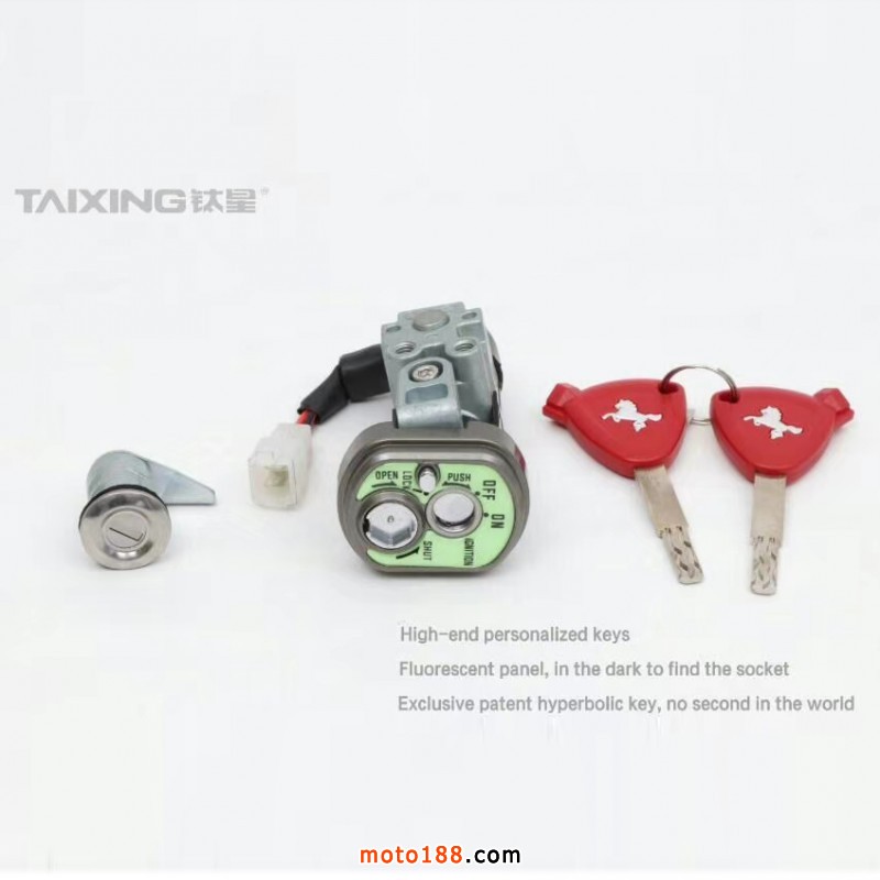 專業生產摩托車、電動車鎖具,套鎖,點火開關。產品銷往全國各大市場,并出口東南亞、南美等國家。