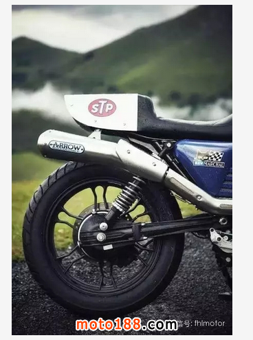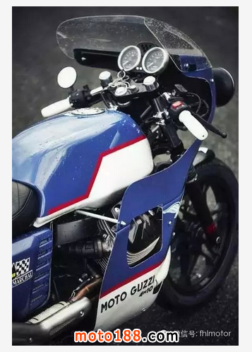 車身主要輪廓都采用原廠配置,當然也因應Cafe的需求,換上分離式車把,座椅與后駝峰也是重新制作,不過后駝峰并不是大家傳統印象中的Cafe風格,則是延續Boldor耐久賽樣式,這種混搭風格也可以給國內的V7車友們進行參考。