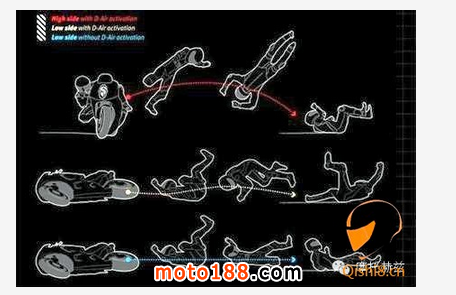 2、High Side高拋: 就是人從車子的上方(High Side)飛出去,重重的摔倒在地上以后,已經少了半條命,這時霉運才剛剛開始,因為車子從后面也往騎士的方向甩來,要是被它命中的話恐怕......顯然,這樣的摔車形式我們必須要盡量避免,這可比滑倒危險太多了!