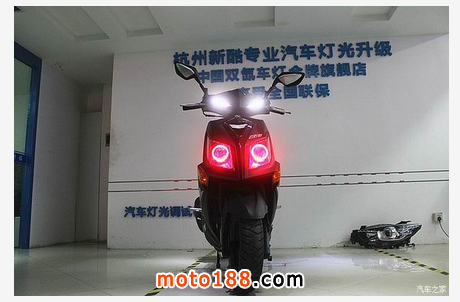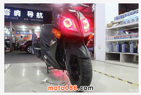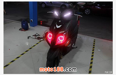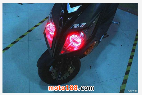三陽 JetPower 俗稱三陽小鋼炮,車前大燈有著鷹嘴的味道新增添的誘惑紅天使眼使得整個大燈更加完美、新穎、獨特在夜行時顏值暴漲,魅力四射改裝后的小鋼炮放大了瞳孔更適合在夜間狂野飆車,燈光鋪路效果非常棒
