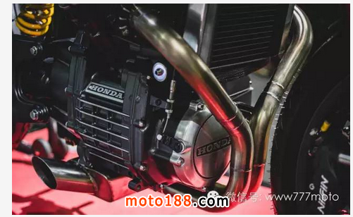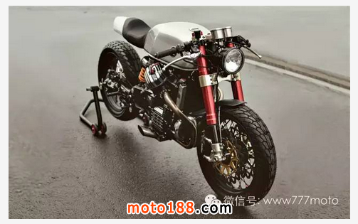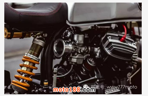 為完整保留那粗曠的性感,他將引擎外觀烤上深邃的霧黑再配上那Y字排氣管前段,完全展現(xiàn)老V缸的美!追求一個極簡造型他去除掉不必要的零件與車殼,讓車身輕量化同時線條變得利落,簡單的鋼管后搖臂配上?lhins中置避震,引擎到后輪線條一氣呵成。為了展現(xiàn)咖啡風(fēng)格前叉用上強(qiáng)壯的紅色倒叉,三角臺角度設(shè)定的更挺直,讓CX500的重心向前傾倒,最后裝上分離斜把、單座皮椅、拋光的大油箱與單片后土除。一個重獲新生濃郁咖啡味的HONDA CX500出現(xiàn)在你眼前。