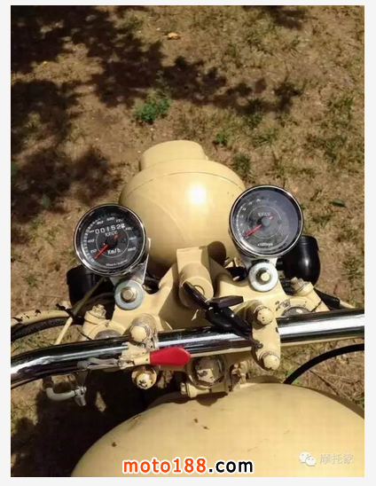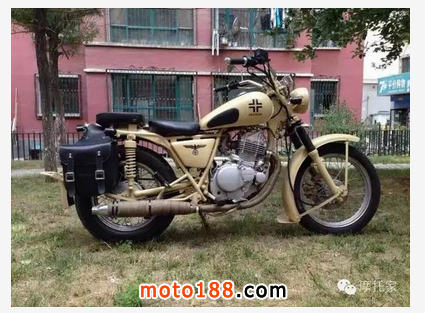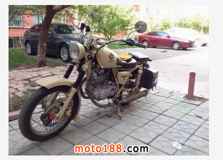 顏色和模型是不是一模一樣,油箱上貼十字標(biāo)表明身份,后輪避震改裝復(fù)古直立式,坐姿更加舒適略帶侵略性,改裝仿哈雷90cm寬25mm直徑大雁把,13升超大油箱,提升巡航里程,風(fēng)門改裝至把頭,復(fù)古感覺超強(qiáng),加強(qiáng)冷車啟動(dòng)效率,郵遞員得有邊箱裝那些信嘛~。前后輪改裝建大輻條式輪胎,復(fù)古獨(dú)立座包,長江750前后擋泥板使整車感覺更加厚重復(fù)古,仿哈雷手把開關(guān),功能性更強(qiáng)增強(qiáng)機(jī)械手感。改裝twpo汽用蘑菇頭進(jìn)氣,里程表、轉(zhuǎn)速表改裝kege兩個(gè)復(fù)古單表,排氣包裹防燙布,改裝腳剎踏板,改裝米庫尼300化油器加大供油,再退后兩步迷上眼感受下整體氛圍,這股二戰(zhàn)摩托的趕腳還是很濃的嘛~。
